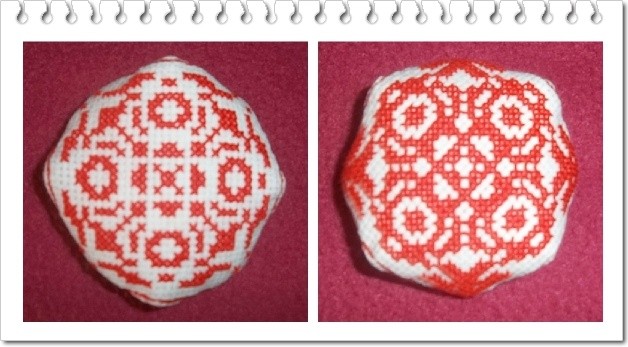 Alister a utilisé la grille N° 141 pour son biscornu. Comme à son habitude, il a utilisé le 1/2 point de croix.